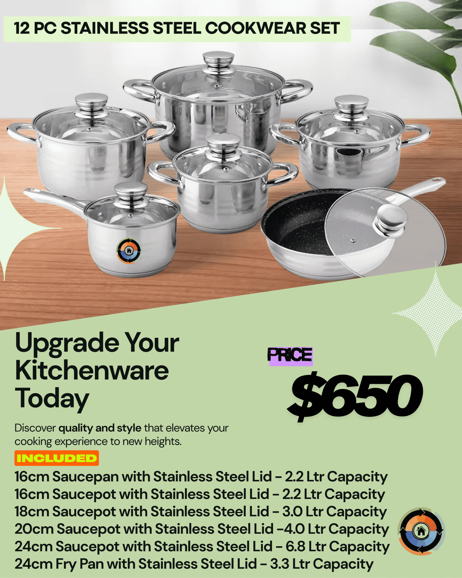 Swiss Home 12 Pc Stainless Steel Set