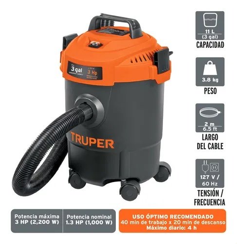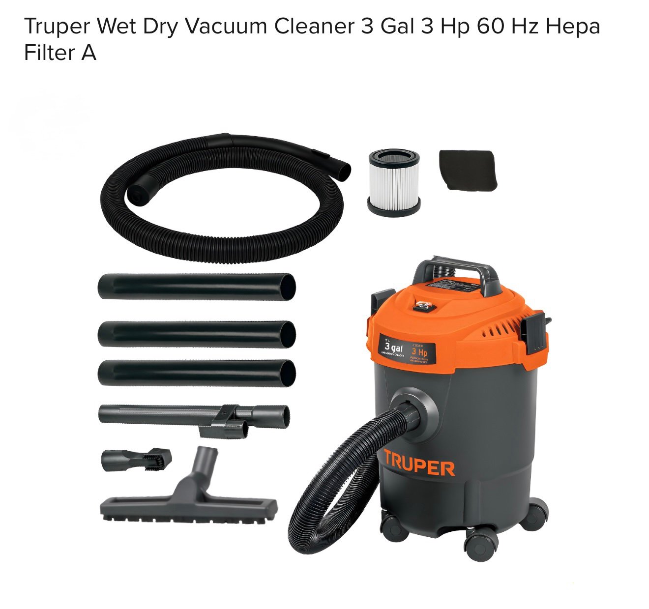 Truper Wet Dry Vacuum Cleaner 3 Gal 3 Hp 60 Hz Hepa Filter A